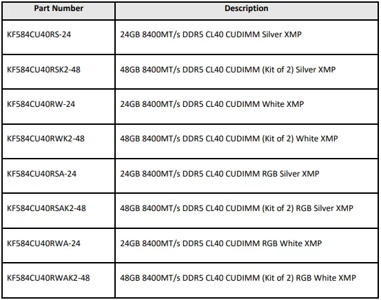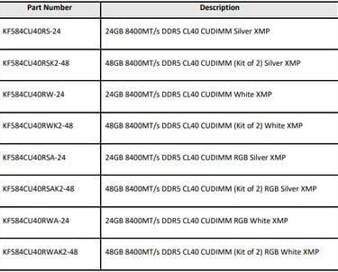 As novas memórias começam com uma velocidade de overclock de 8400MT/s e estão disponíveis em módulos únicos de 24GB e kits de canal duplo de 48GB. Como os CUDIMMs e UDIMMs compartilham o mesmo conector de 288 pinos, os UDIMMs Kingston FURY com perfis XMP e EXPO também são compatíveis com as placas-mãe da série 800 da Intel.
