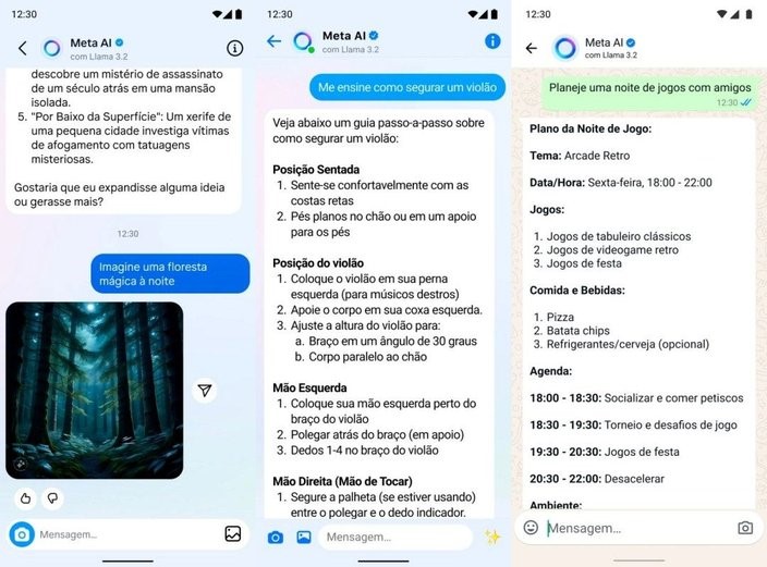 Desenvolvida com uma base de dados da Llama 3.2, o Meta AI promete ser um parceiro nas redes sociais. Segundo a companhia, é possível tocar no ícone do assistente e pedir indicações de restaurantes para encomendar uma refeição, ou elaborar uma lista com locais para visitar durante uma viagem.